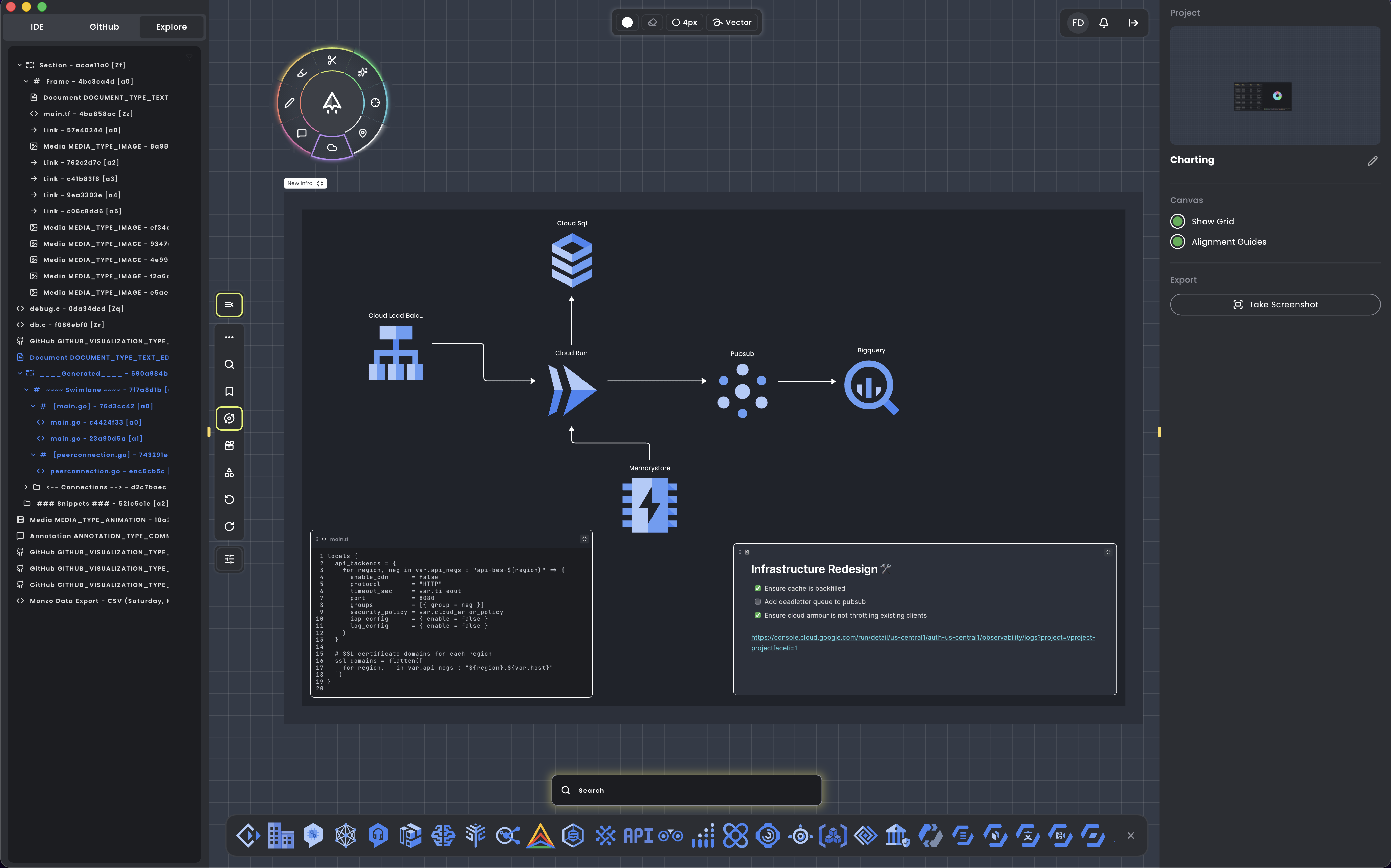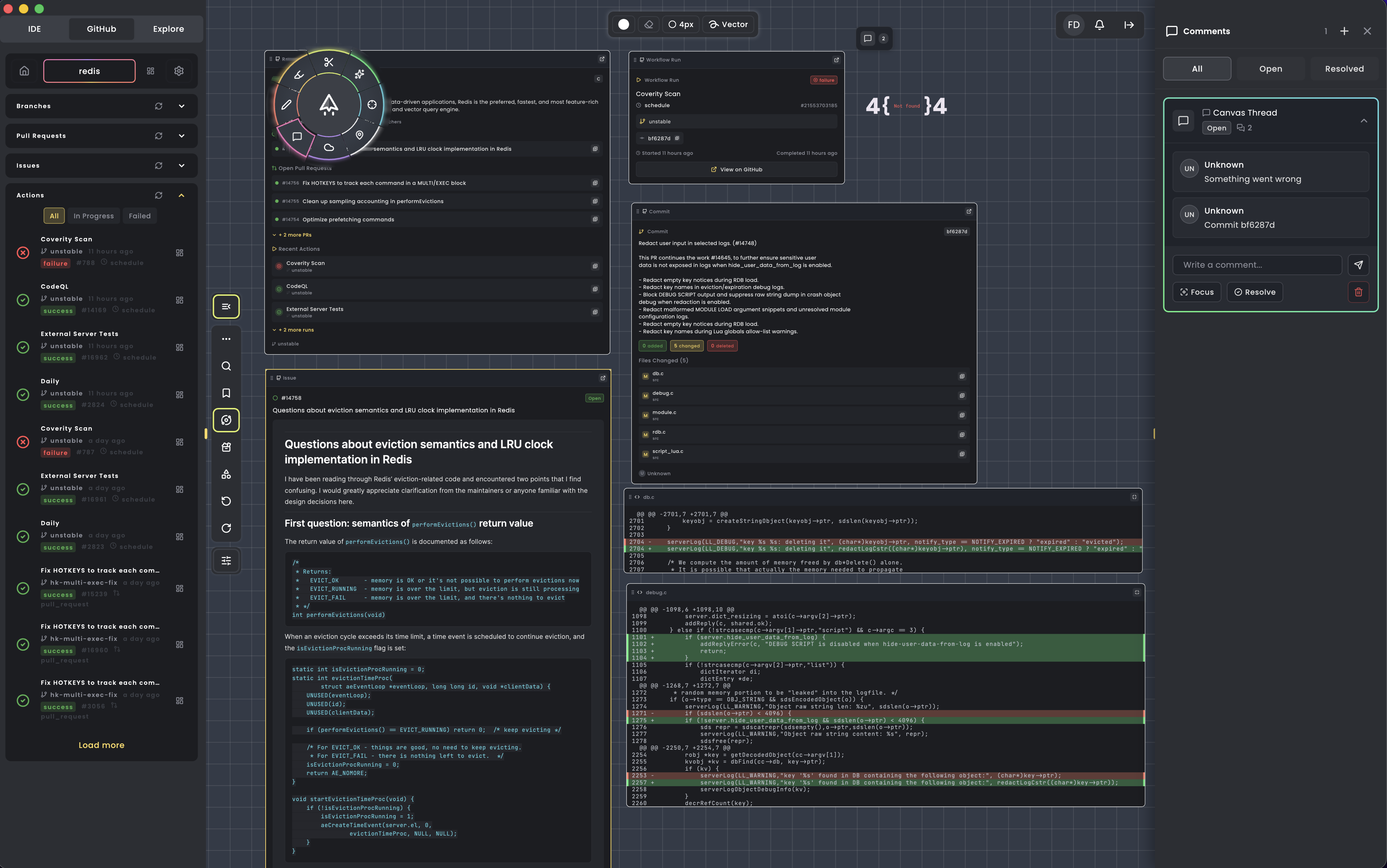 Visualize your codebase on a canvas. Create notes, diagrams, and connect disparate parts of your codebase to better communicate complex ideas.